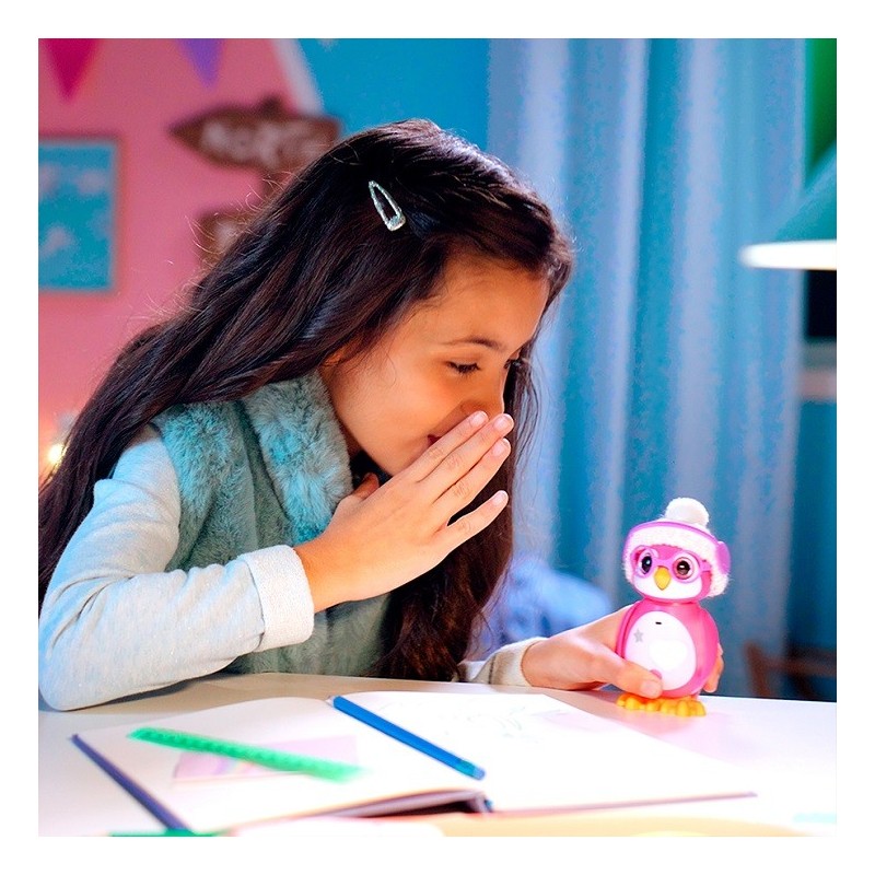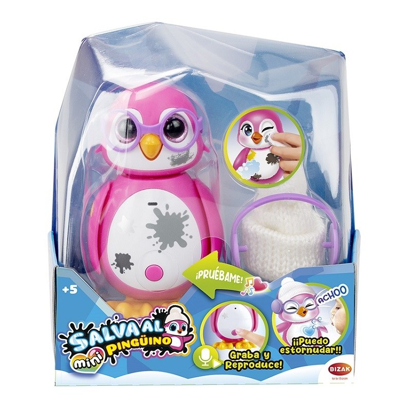 Bienvenido al mundo de Mini Salva el Pingüino! Fantásticas mascotas interactivas con accesorios. Son tan pequeños y divertidos ¡Limpia los sucios pingüinos y ponles los accesorios! Observa cómo se les ilumina el corazón de diferentes colores cuando interactúas con él ¡e incluso estornudan cuando les soplas aire! Los mini pingüinos tienen función de grabación y reproducción. Prueba a poner el dedo sobre los mini pingüinos y deja que sientan tus emociones ¡los pingüinos te dirán si estás contento, tienes frío, estás cansado o tienes suerte! ¡Cuida de los pingüinos y serán tus mejores amigos para siempre! Disponible en negro, rosa y azul.
